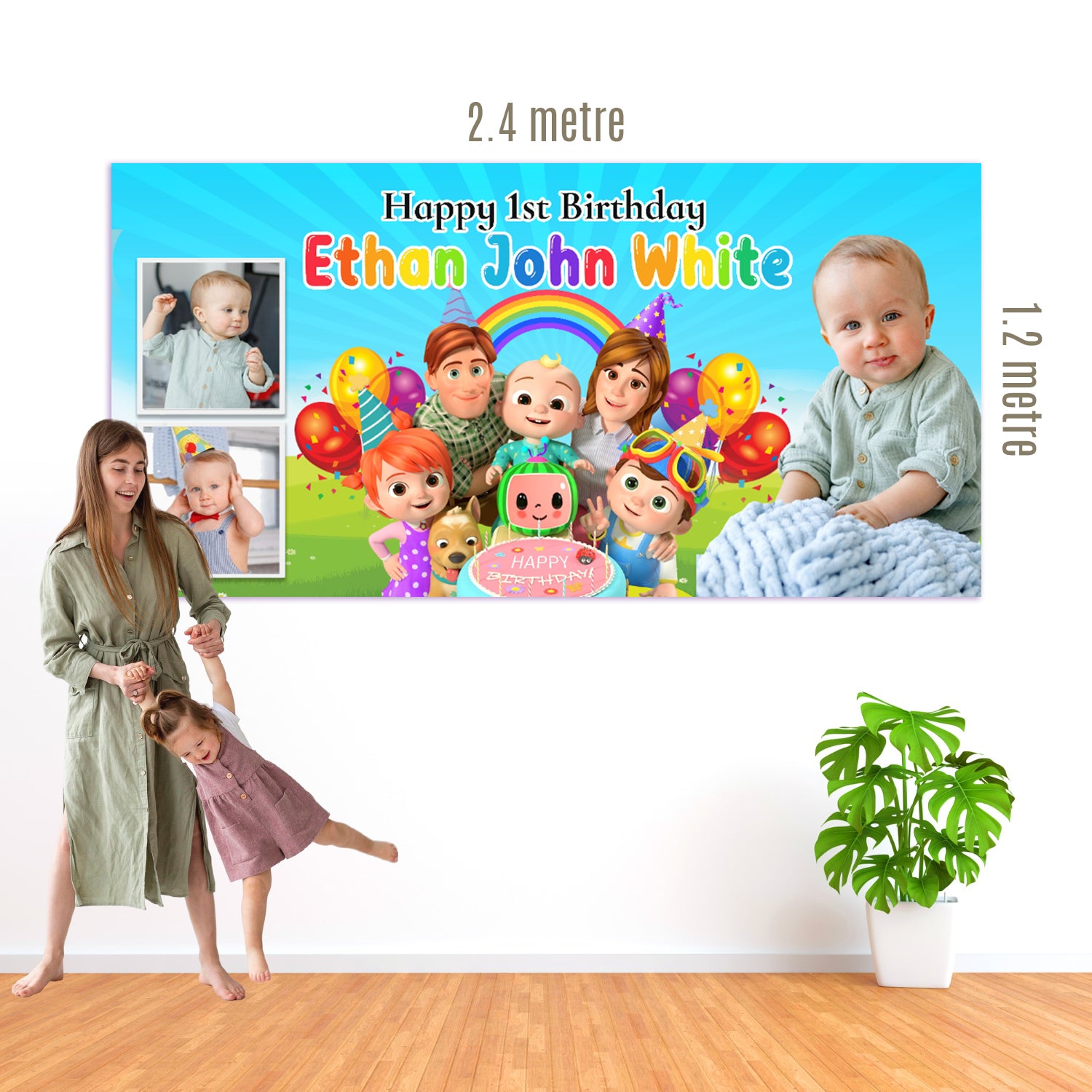 - A clear headshot of the child, plus three extra photos for the bottom of the banner